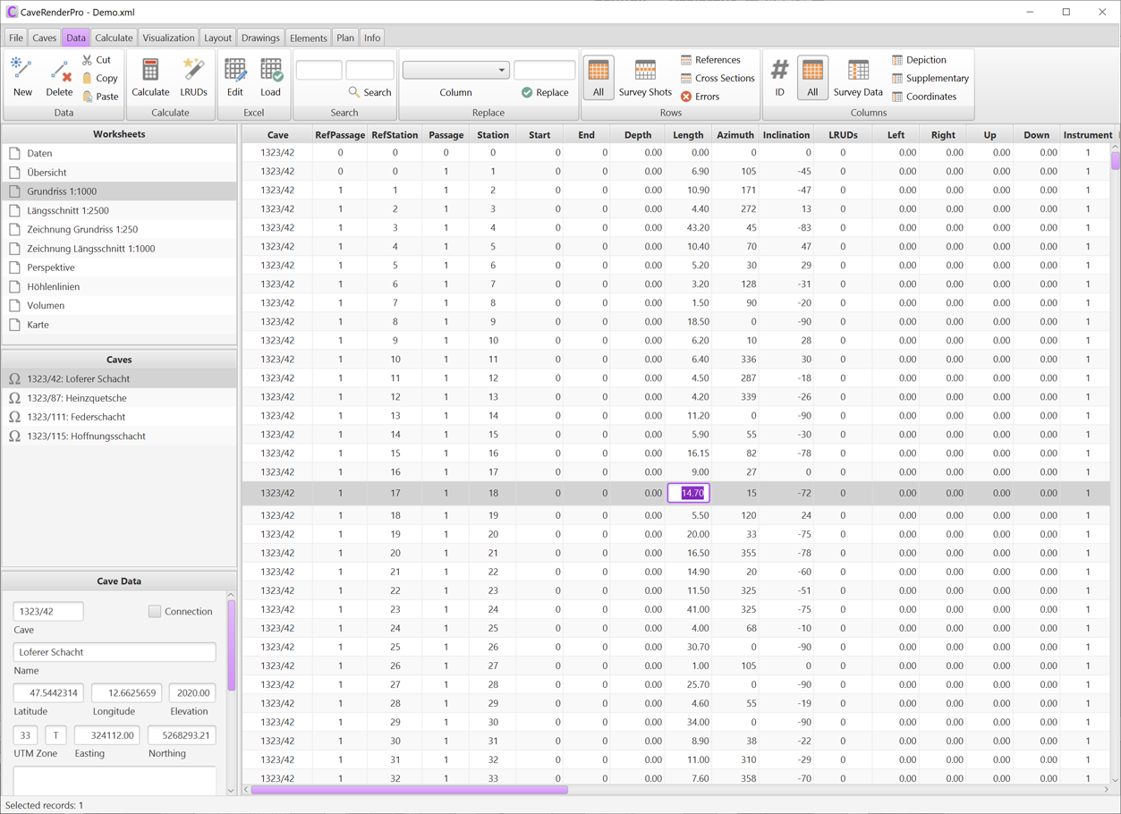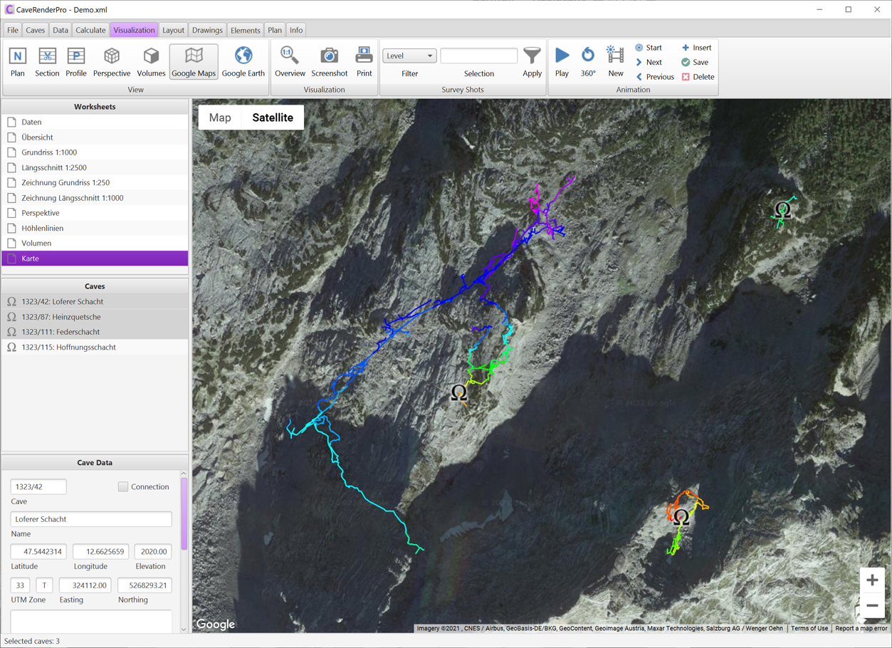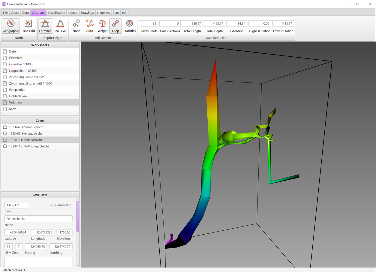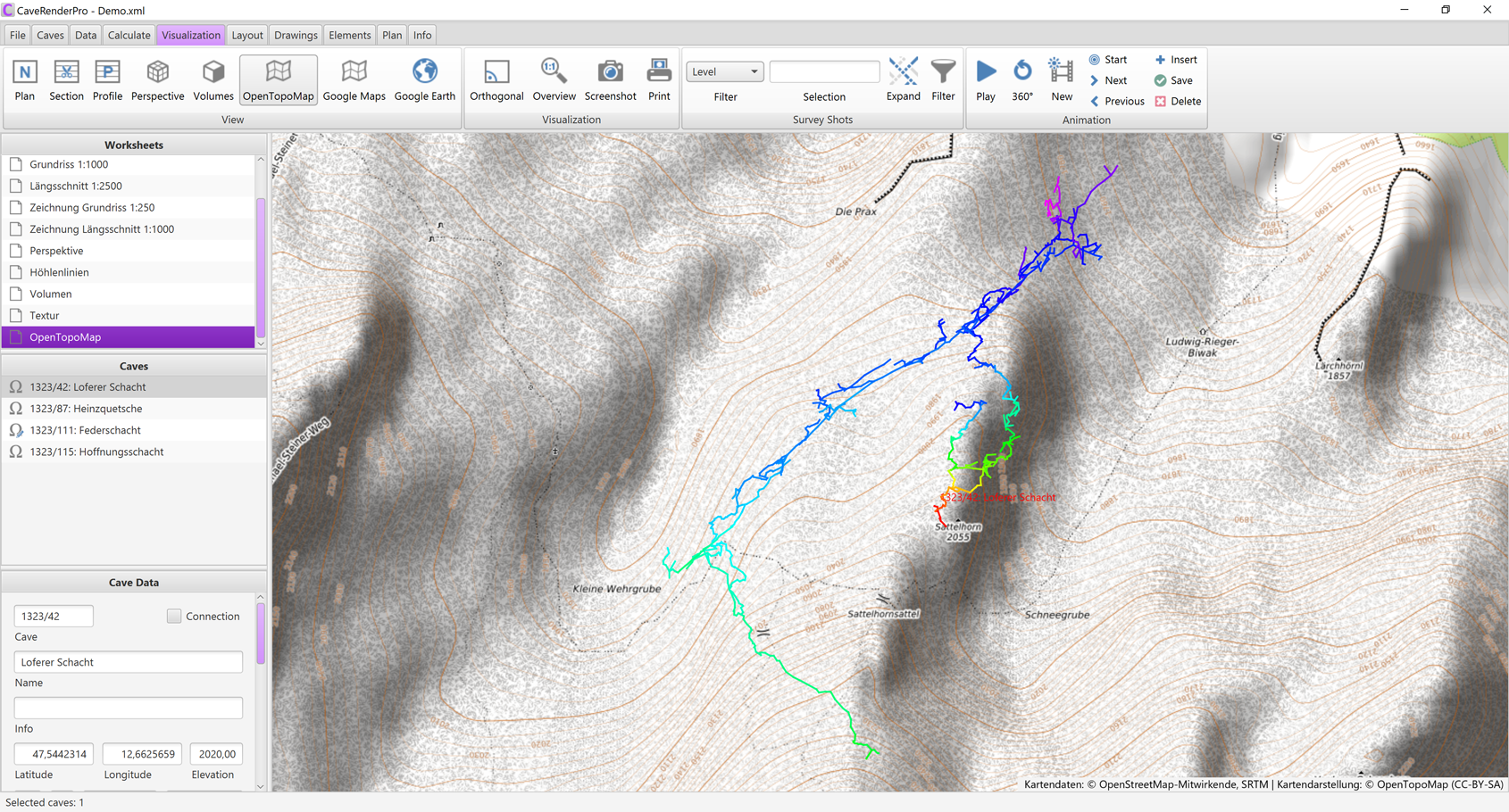 - Export: PocketTopo/VisualTopo, DXF-Format and Google Earth (KML)