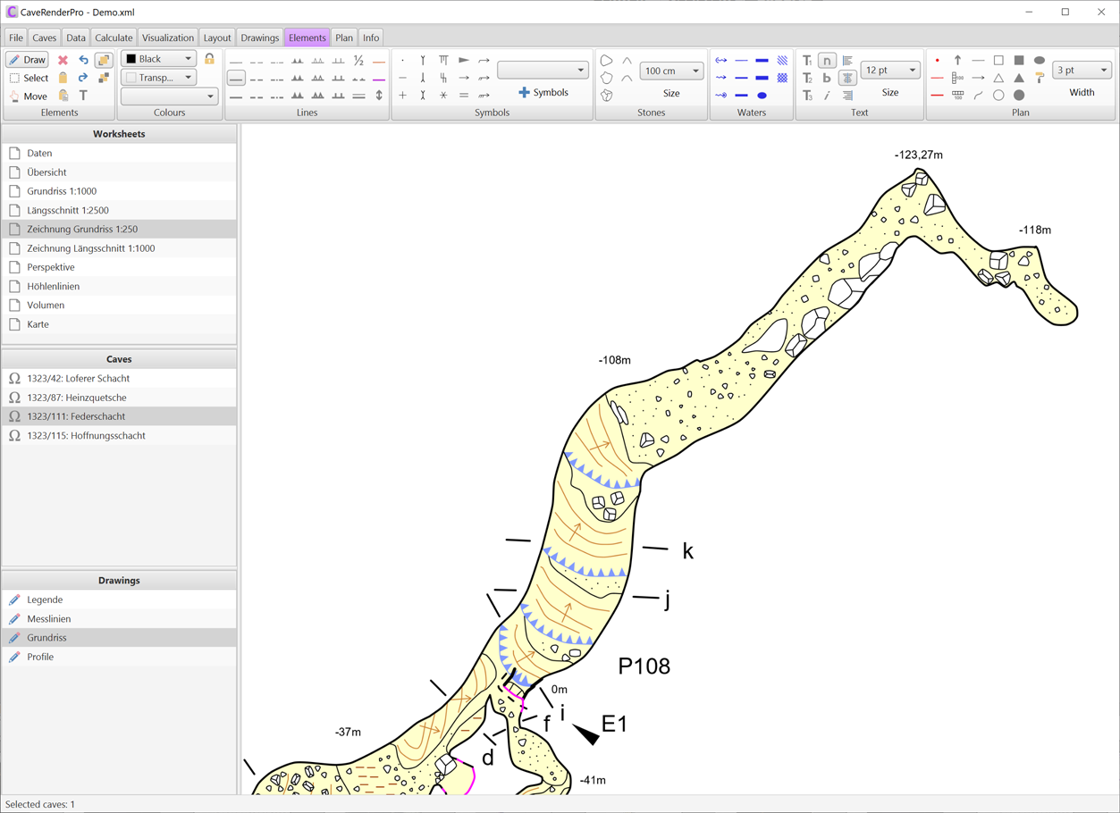 - Cave map drawing tools with background sketches (PocketTopo-, TopoDroid-DXF and