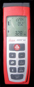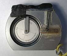 Mit einem Laserpointer, der vertikal drehbar an einem Topofil befestigt ist, können auch bei steilen Peilungen exakte Kompasswinkel abgelesen werden.