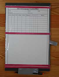 Die Vorlage des Vermessungsprotokolls (Winword-Dokument) kann mit einem Laserdrucker doppelseitig auf wasserfestes Papier (z. B. Syntosil-Papier) gedruckt werden. Für die Beschriftung haben sich 0,5mm Minen-Bleistifte bewährt.