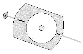 Ober- und unterhalb des Kompass befinden sich Glasstäbe, mit denen die Lichtmarkierung am Zielpunkt angepeilt wird. Dadurch kann der Kompass im Neigungsbereich von +85° bis -85° richtig ausgerichtet werden (siehe Visiersystem für den Kompass).