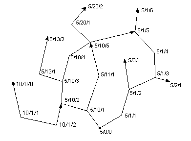Unterschiedliche Gangnummern trennen die verschiedenen Gänge. Beginnt ein neuer Gang wird der Referenzpunkt (ein bestehender Messpunkt) mit Höhlen-, Gang- und Punktnummer angegeben. Diese Zeile wird im Vermessungsprotokoll mit R" markiert.