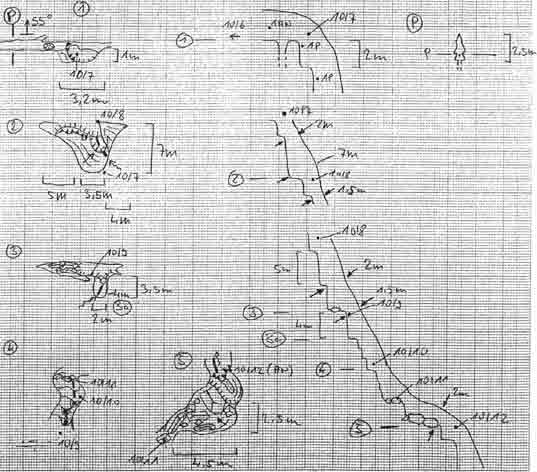 Die Aufzeichnung des verwendeten Materials (Spits und natürliche Sicherungen, jeweils mit dem Abstand zum Messpunkt, Seillänge und Seilnummer) ist für die spätere Materialplanung sehr wichtig.